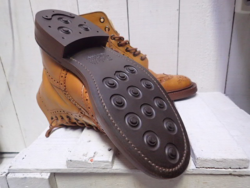 トリッカーズ/オールソ-ル 今回はTricker'sカントリー ブーツのレザーソールからダイナイトソールへ仕様変更の修理でした。ダイナイトソールはソールヒールともにサイズ展開が多くて在庫管理がなかなか大変なのですが靴のサイズにあったソールを使用する為にがんばってすべてのサイズを取り揃えています!コバまわりの特徴となるインクはイギリス製で違和感なく仕上がります! 2017/07/10